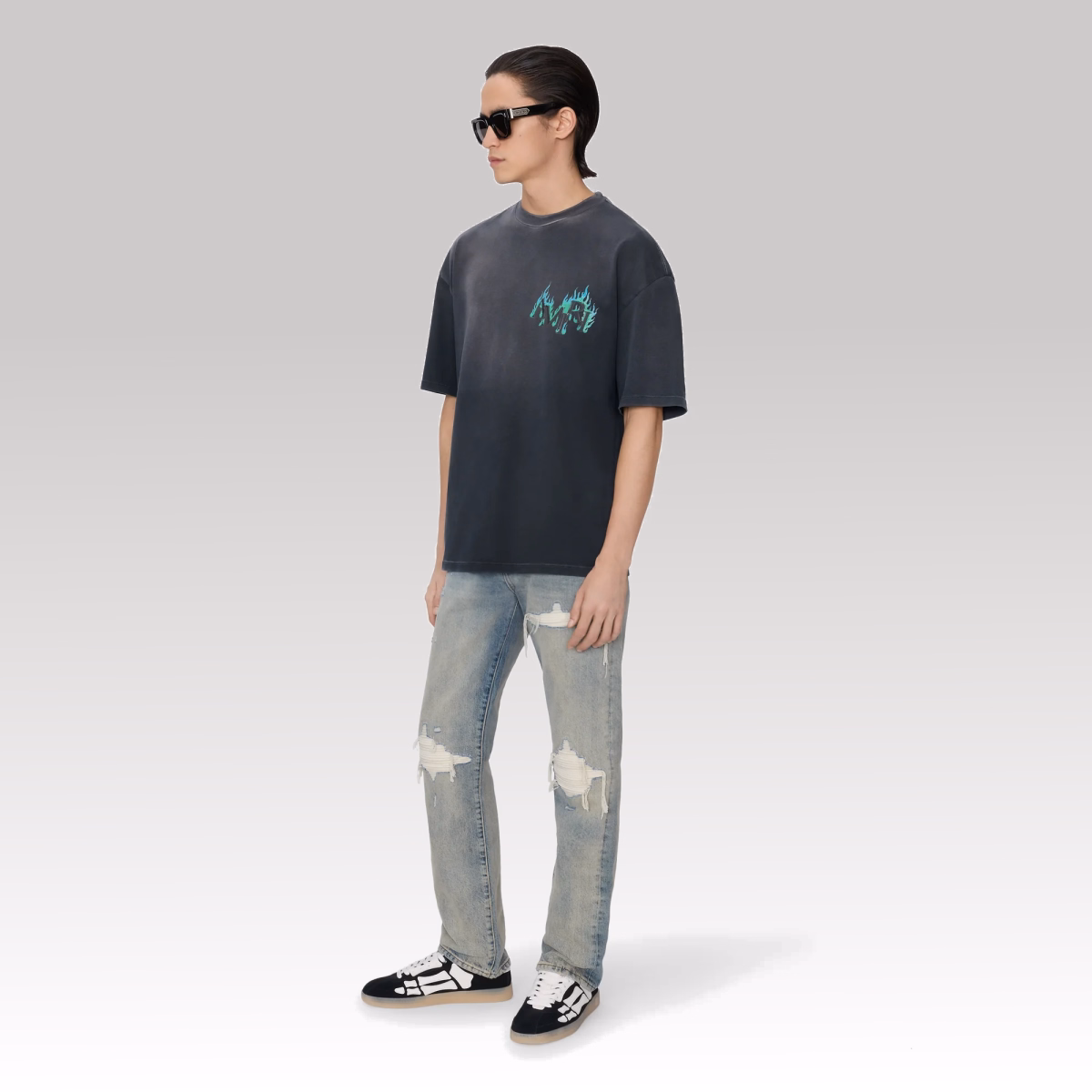 Crafted from premium heavyweight cotton, the tee offers a soft yet structured feel, ensuring durability and long-lasting wear. The highlight of the piece is the Amiri Flames graphic enhanced with crystal-style detailing, adding a subtle shine and elevated edge to the iconic flame design.