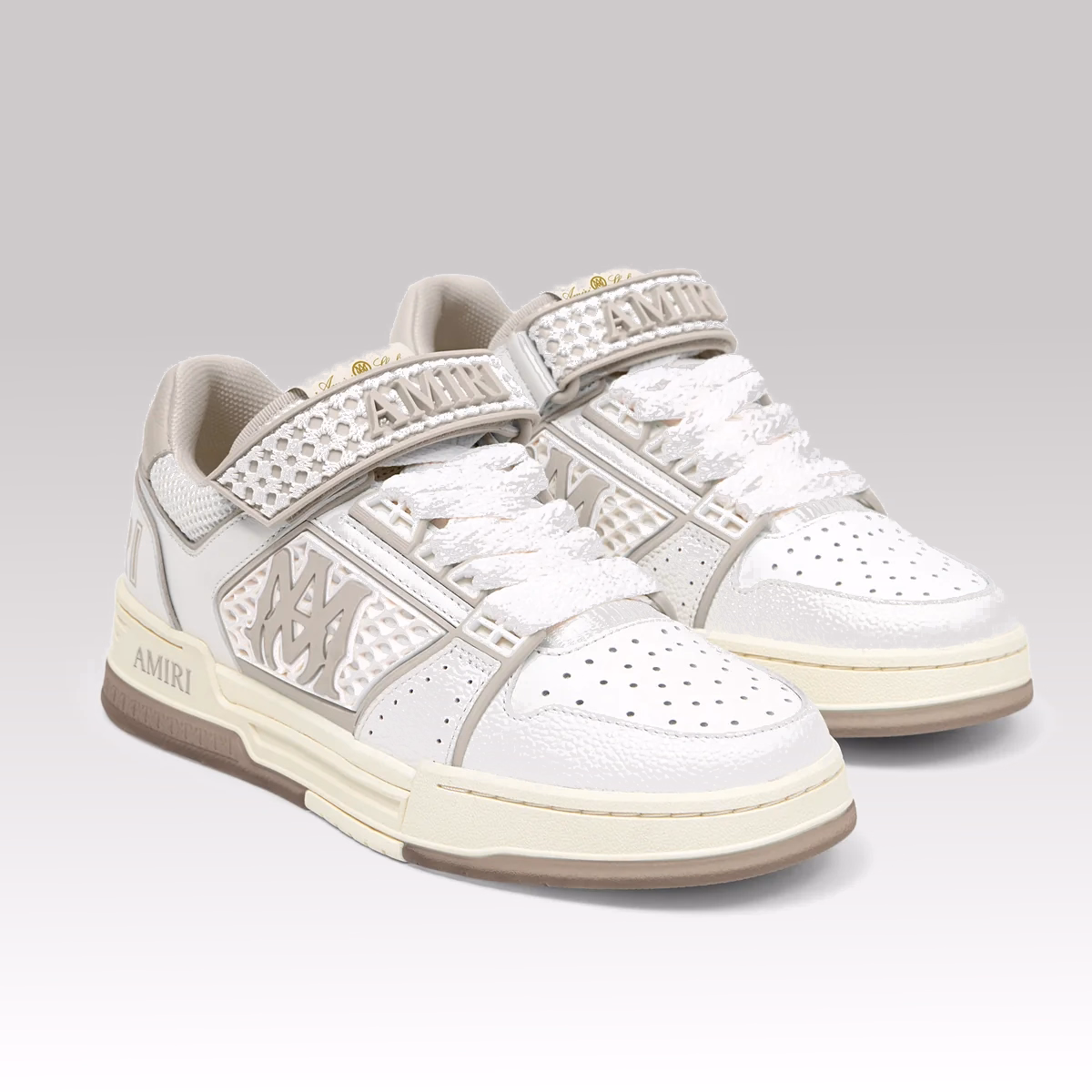 Crafted from a premium mix of leather and suede, the sneaker offers a structured yet comfortable feel, built for durability and long-term wear. It sits on a two-tone rubber sole, providing reliable grip and cushioning for all-day use. The signature MA Quad strap with hook-and-loop closure adds both functionality and a distinctive Amiri identity.
