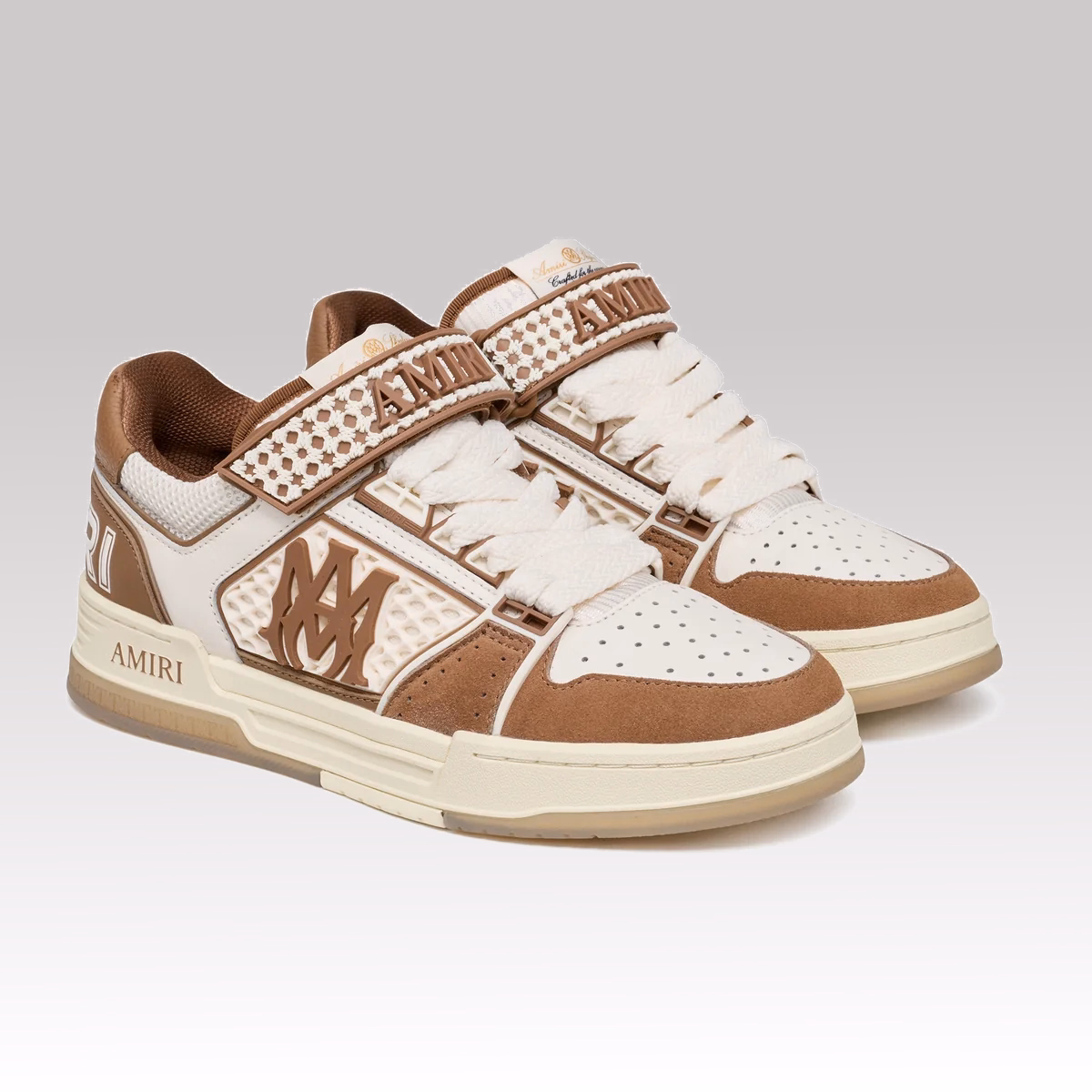 The Amiri M.A Skyline Sneaker in Brown (Tobacco) is a refined take on luxury streetwear footwear, combining retro basketball inspiration with modern high-end design.
