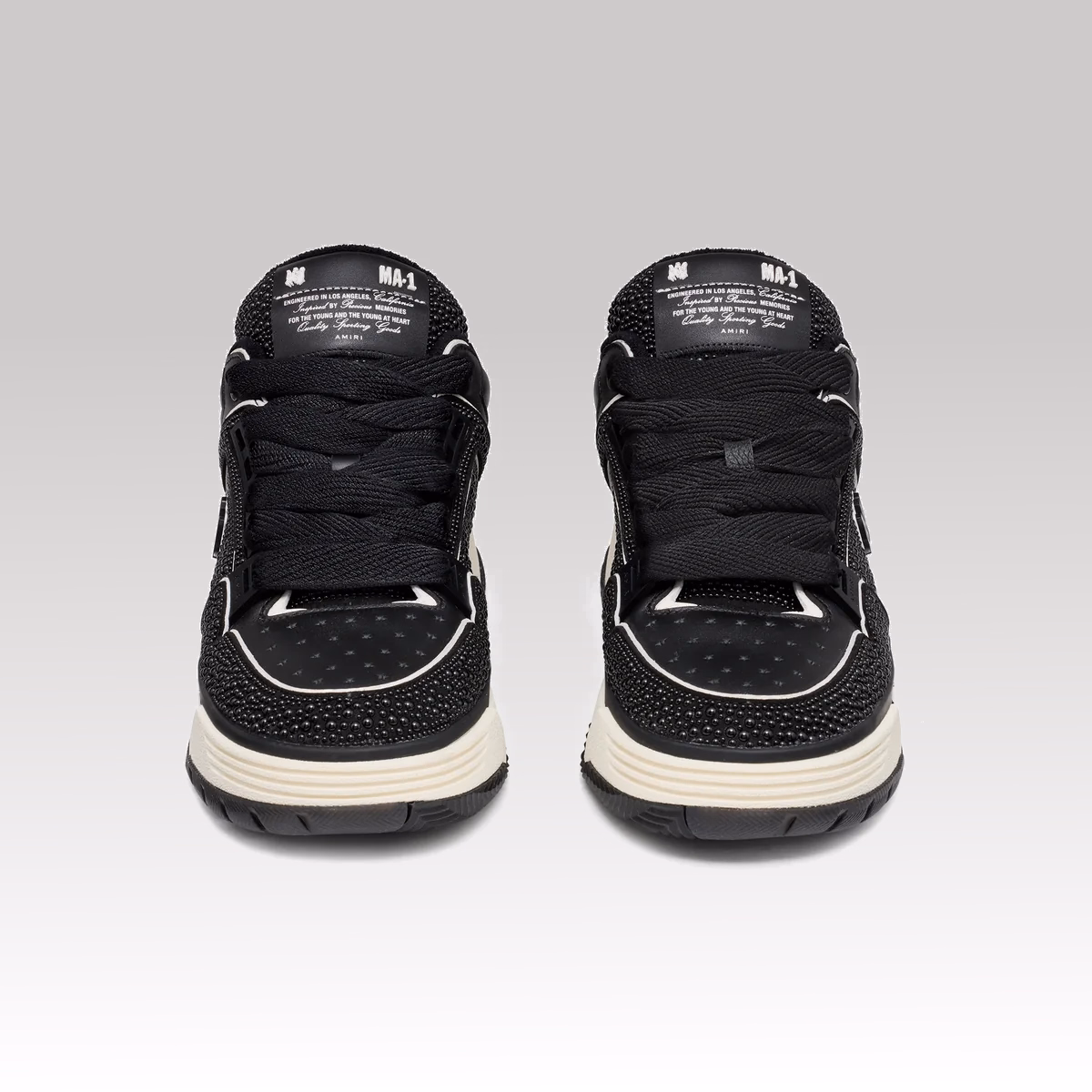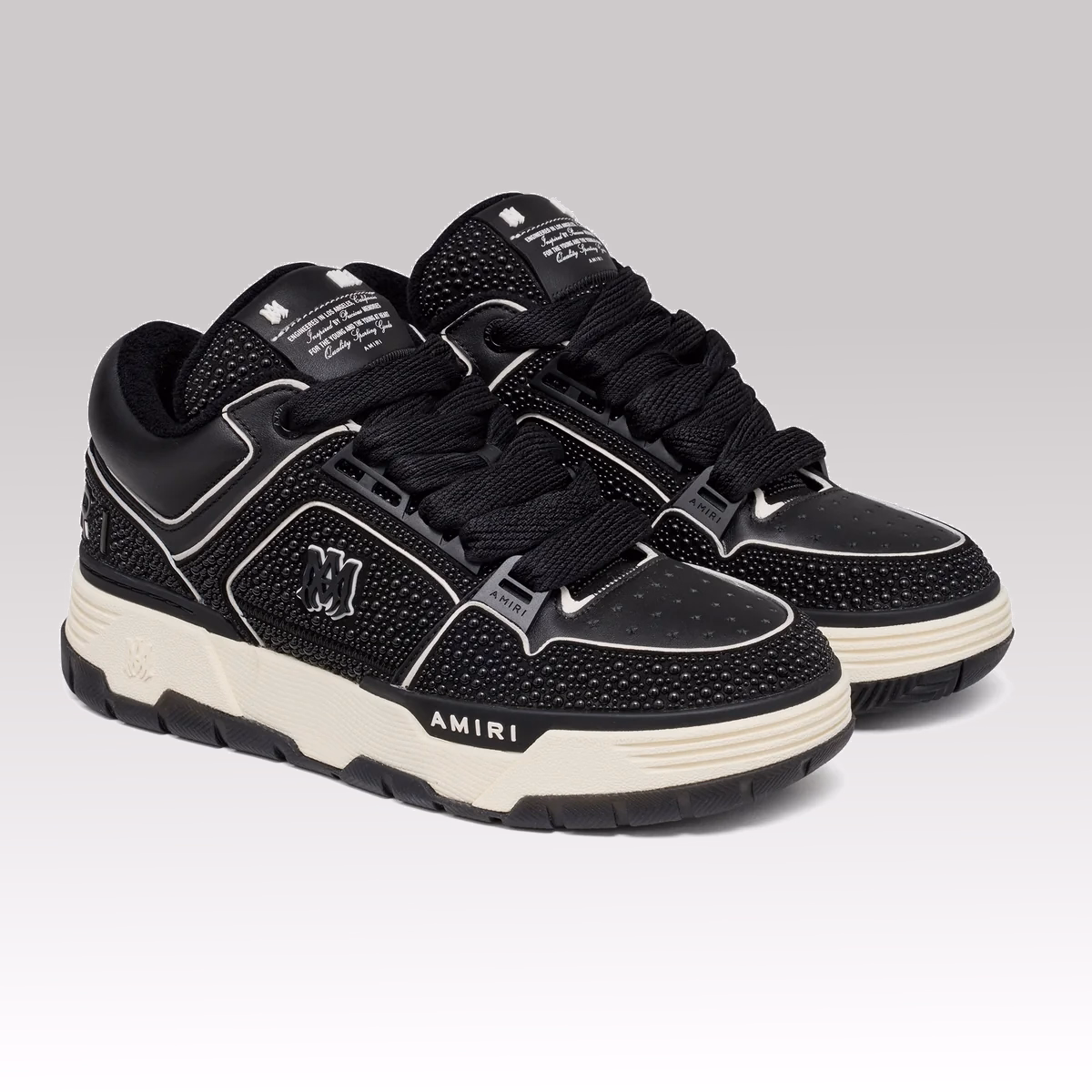 The Amiri MA-1 Pearl Sneaker is a bold evolution of the iconic MA-1 silhouette, reimagined with elevated detailing and a luxury finish. Inspired by amplified 90s skate sneakers, it combines statement design with high-end craftsmanship.