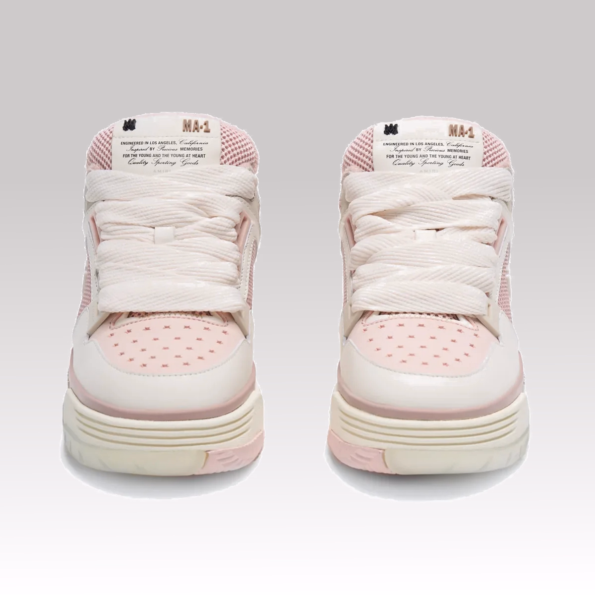 The Amiri MA-1 Sneaker White & Pink brings a fresh and stylish twist to luxury streetwear. Featuring a clean white base with soft pink accents, this sneaker blends bold design with a refined, modern aesthetic.