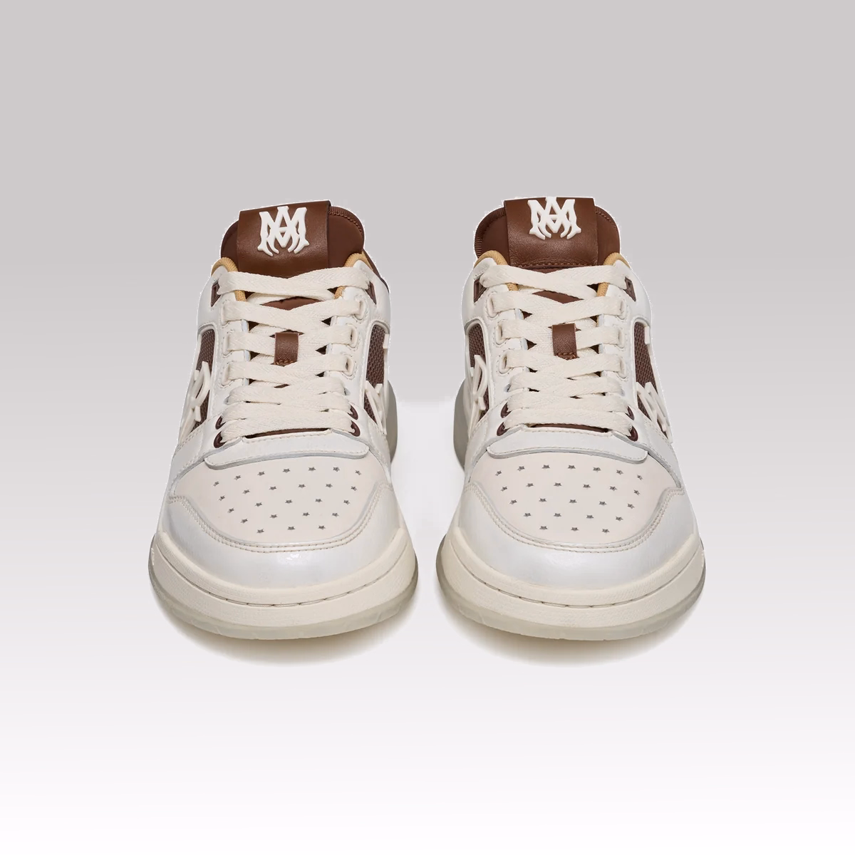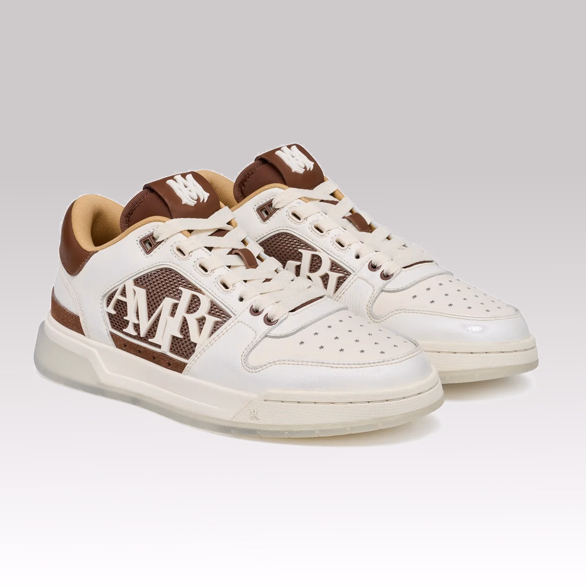 Crafted from premium pebbled leather, the sneaker offers enhanced texture, durability, and a sophisticated finish. It features molded rubber mesh side panels framing the Amiri staggered logo, adding subtle depth and identity without overpowering the design.