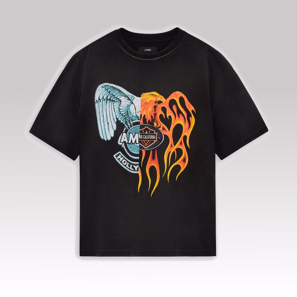 Crafted from premium heavyweight cotton, the tee offers a soft yet structured feel, ensuring durability and long-lasting comfort. The spliced panel construction adds depth and dimension, creating a unique cut-and-sew design that reflects Amiri’s signature blend of rebellion and refinement.