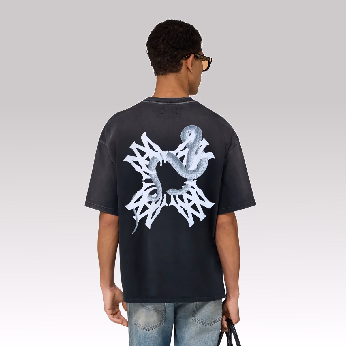 The MA Quad Snake Oversized Tee is a bold statement piece designed for modern streetwear culture. Built with an oversized silhouette, it delivers a relaxed, structured fit that enhances comfort while maintaining a strong fashion presence.